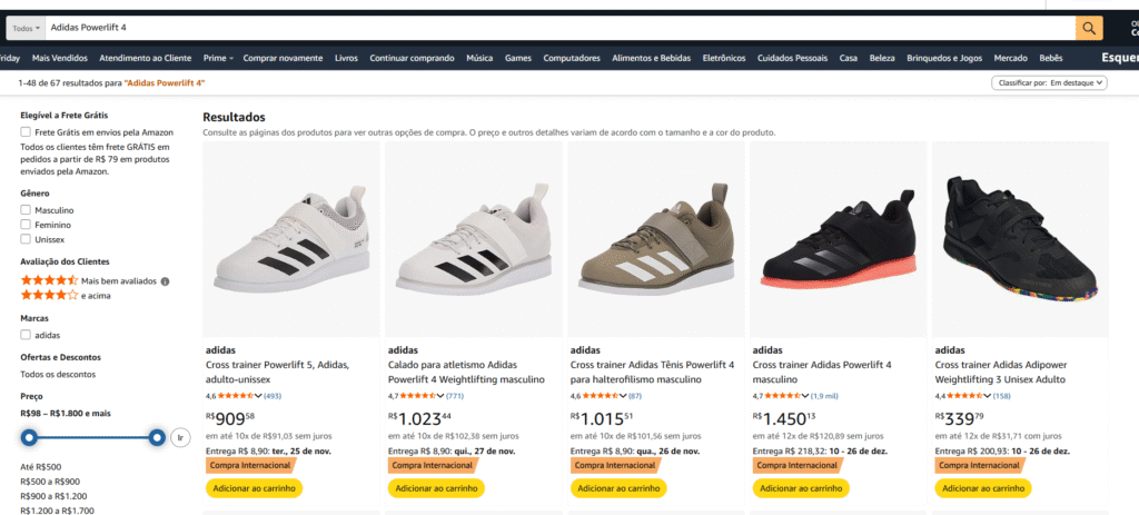 Este modelo se destaca por sua construção robusta e pelo design que favorece a performance em exercícios de levantamento. Por um preço em torno de R$ 499, o Adidas Powerlift 4 é recomendado para treino de força. Entre seus pontos positivos estão a acolchoamento confortável e a ótima relação custo-benefício, mas a falta de amortecimento para cardio pode ser considerada um contra.
