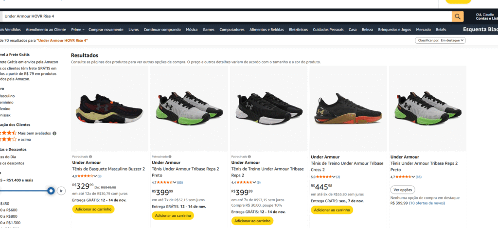 Com um design modernizado, o Under Armour HOVR Rise 4 oferece uma experiência de treino excepcional. Seu preço gira em torno de R$ 650, e ele se destaca em treinos de alta intensidade, mas usuários relataram que sua durabilidade poderia ser melhor.